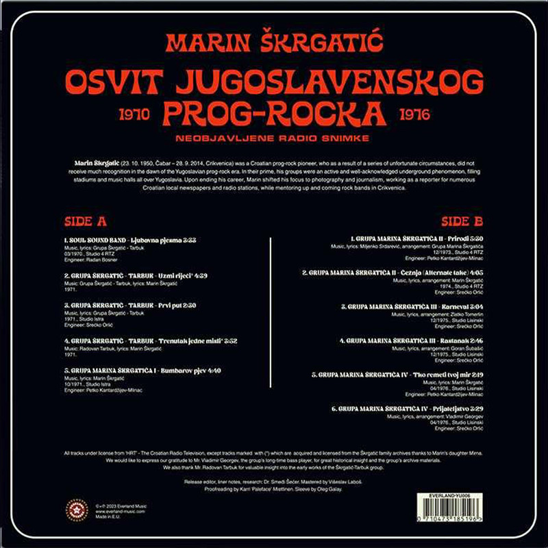 MARIN ŠKRGATIĆ (died in 2014) was a Croatian prog-rock pioneer, who as a result of a series of unfortunate circumstances, did not receive much recognition in the dawn of the Yugoslavian prog-rock era. In their prime, his groups were an active and well-acknowledged underground phenomenon, filling stadiums and music halls all over Yugoslavia. This material represents some of the first attempts to record complex progressive rock arrangements in Yugoslavia – sourcing heavily from local folk music, jazz, and classical influences. Interestingly enough, most of the songs presented here were dismissed as being too progressive at that time - by the largest Yugoslavian record company Jugoton. (from net)